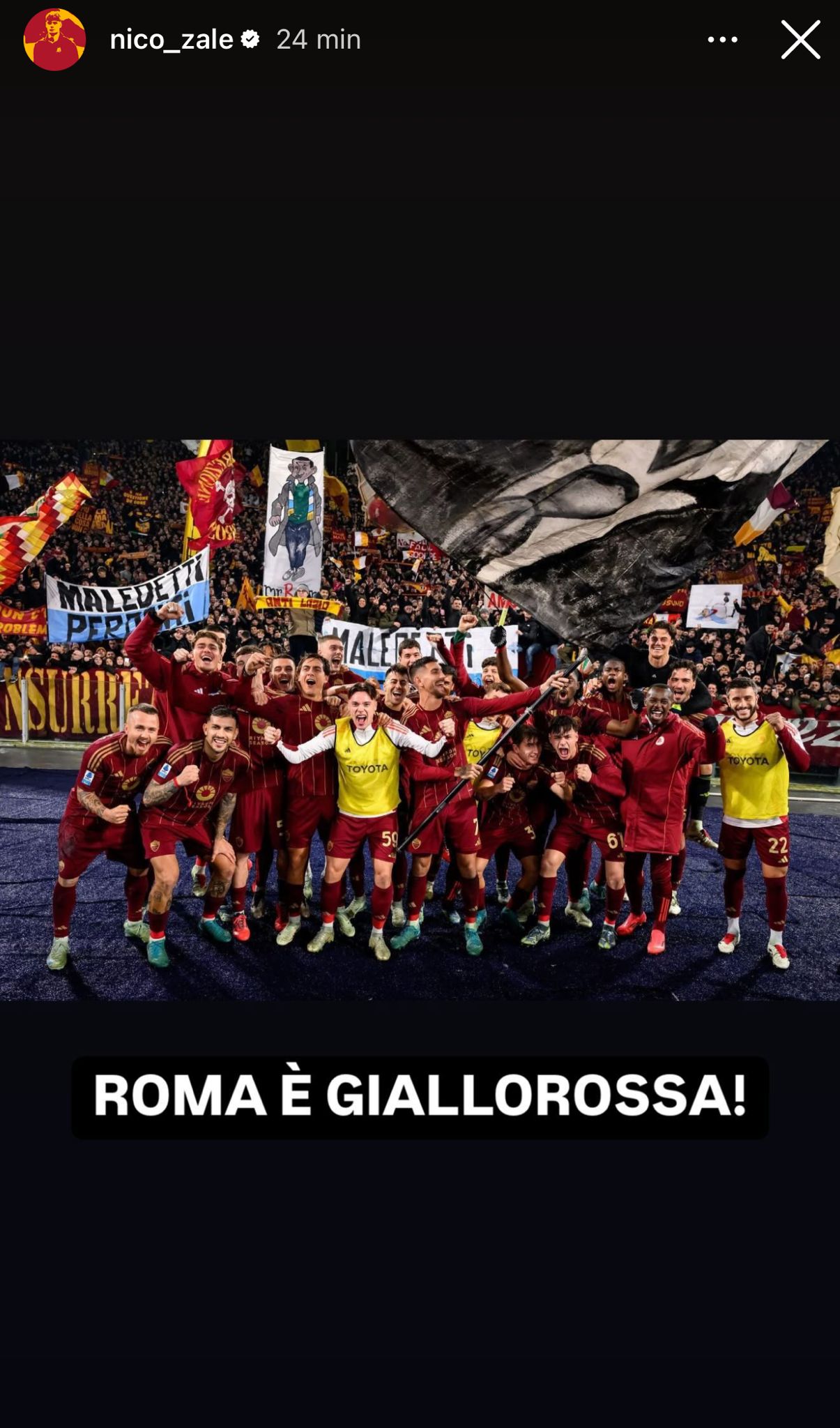 “Il derby è nostro!”, così invece Angelino che ha postato su Instagram l’esultanza di tutta la squadra giallorossa sotto la Sud dopo il fischio finale del derby.