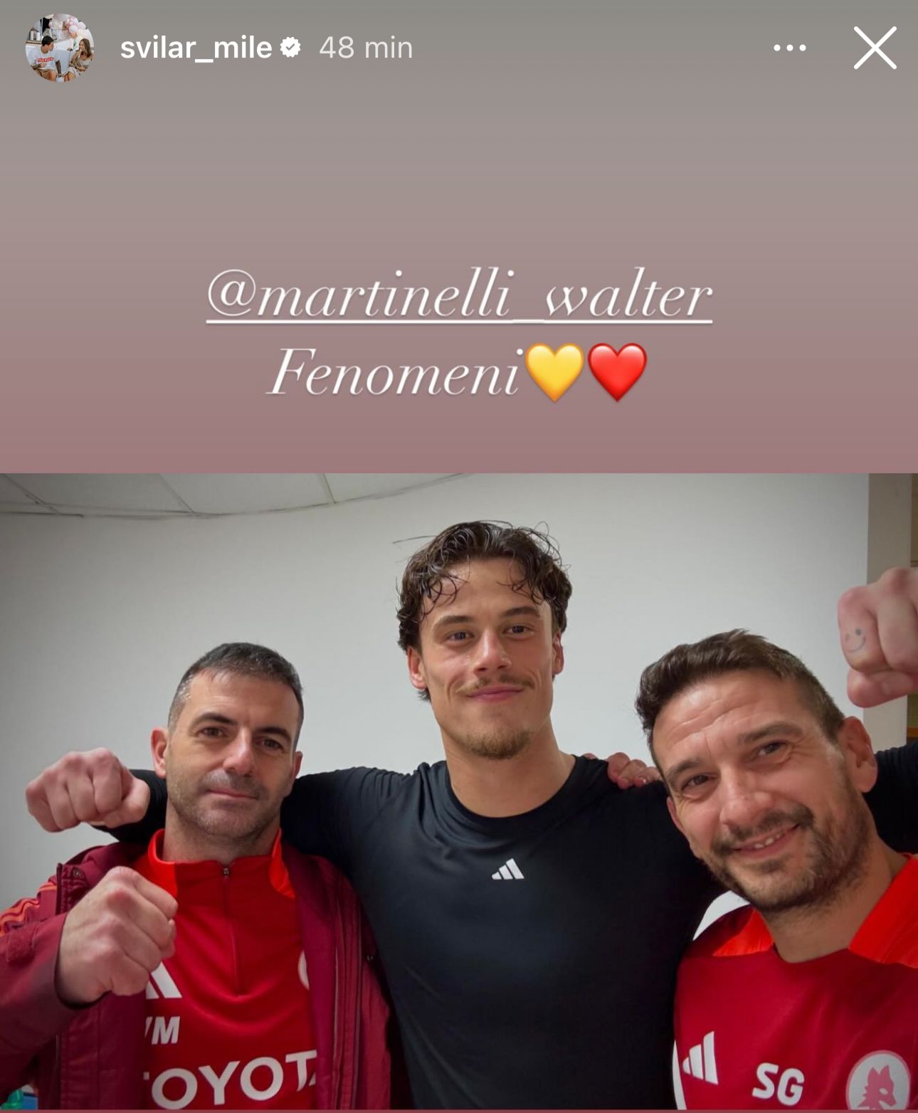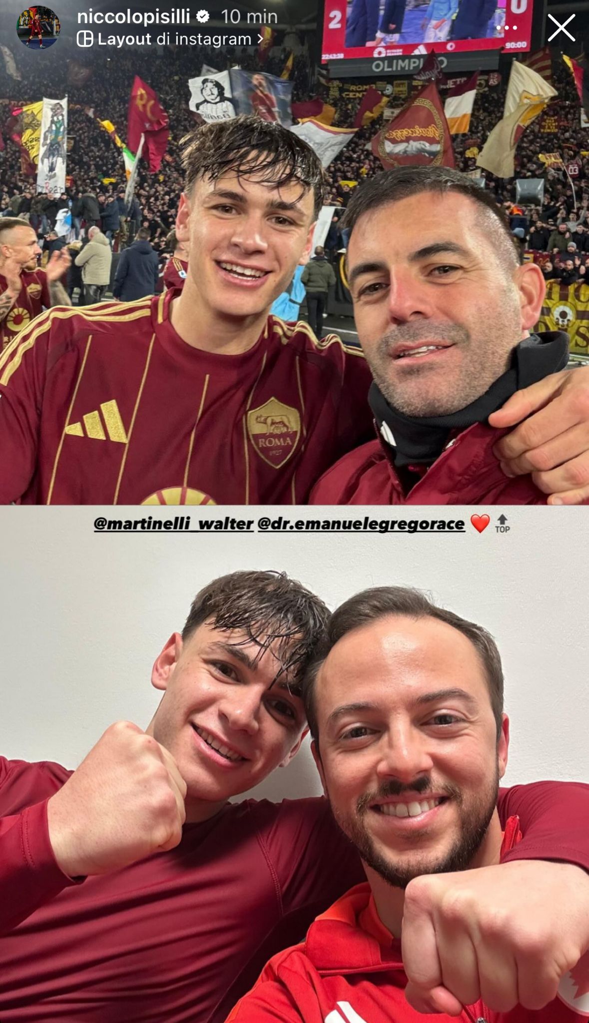 Anche Niccolò Pisilli ha espresso tutta la propria gioia. “Roma“, ha scritto il classe 2004 postando la foto della squadra sotto la Curva Sud. “Oggi come ieri… Roma è giallorossa”, scrive in un altro post.