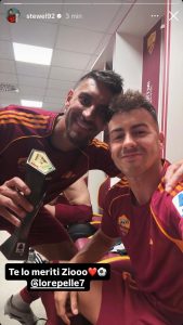 Attraverso una storia pubblicata sul proprio profilo social, il giocatore ha condiviso una foto della partita in televisione, accompagnata da un semplice ma sentito “Forza Roma”.