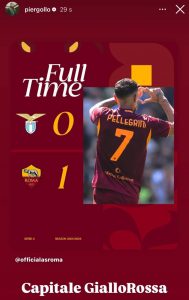 “Per voi, per me, per noi Romanisti”: è questo il messaggio di Lorenzo Pellegrini dopo il suo decisivo nel derby.