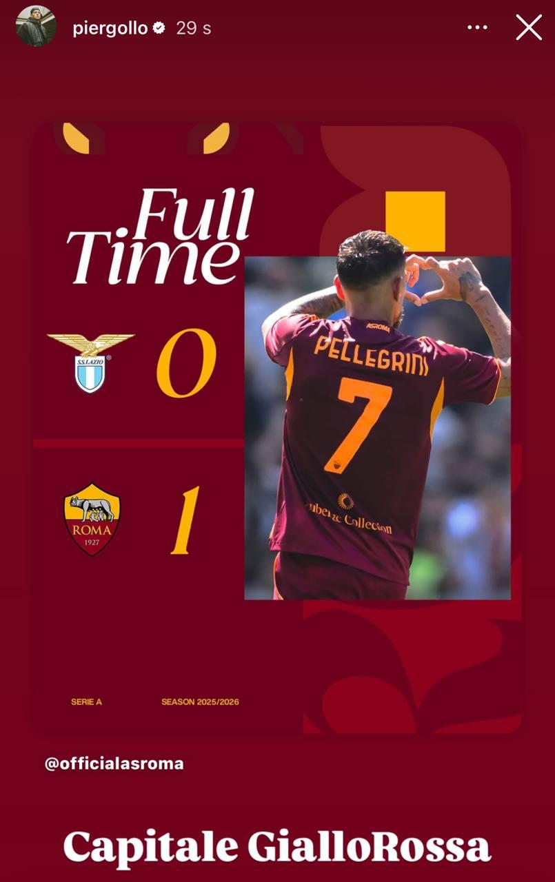 Anche Pierluigi Gollini ha postato sulle proprie storie Instagram: “Capitale giallorossa“, ha scritto il portiere.