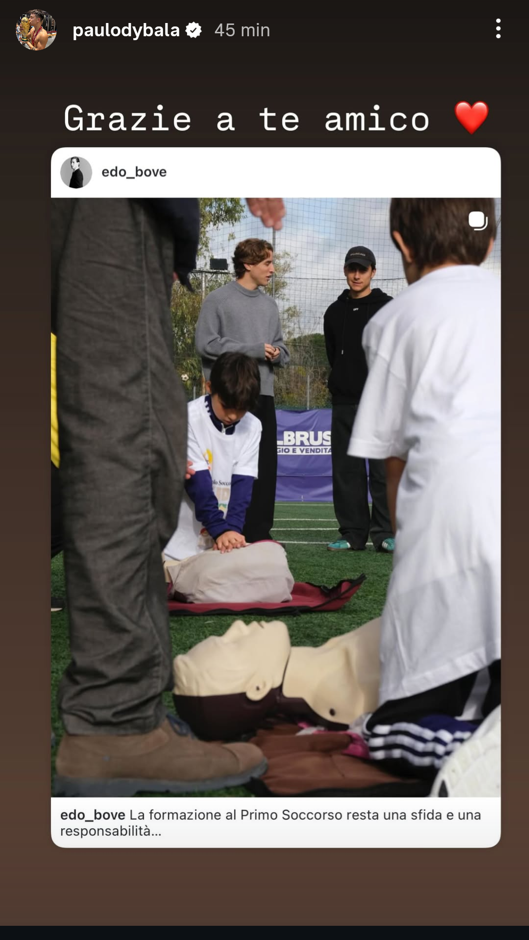 “La formazione al Primo Soccorso resta una sfida e una responsabilità”, ha scritto il centrocampista, ringraziando poi l’argentino per aver condiviso con lui questa esperienza.