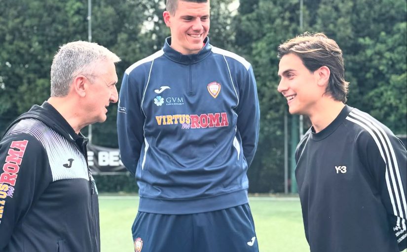 Paulo Dybala è stato il protagonista di una bella iniziativa della Roma dedicata ai ragazzi del calcio integrato. Il fuoriclasse argentino è stato quindi l’ospite speciale al campo di allenamento della Virtus Roma 1960, squadra di pallacanestro che milita nella Serie B Nazionale, e ha incontrato il coach Marco Calvani e il cestista Matej Radunic.