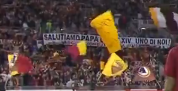 Una notte emozionante quella di ieri all’Olimpico. Non solo il successo sul Milan e gli omaggi per Claudio Ranieri e Lorenzo Pellegrini. Tra i vari striscioni, infatti, ne è spuntato uno pure per il nuovo Papa: “Salutiamo Papa Leone XIV, uno di noi!”.