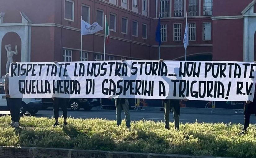 La partita contro il Milan ha segnato l’addio di Claudio Ranieri allo Stadio Olimpico da allenatore della Roma e intanto la società è da tempo alla ricerca del suo sostituto. Prima dell’inizio della gara odierna alcuni tifosi giallorossi hanno esposto uno striscione contro Gian Piero Gasperini (uno dei candidati per il dopo Ranieri) all’esterno dello stadio: “Rispettate la nostra storia… non portate quella m***a di Gasperini a Trigoria!”.