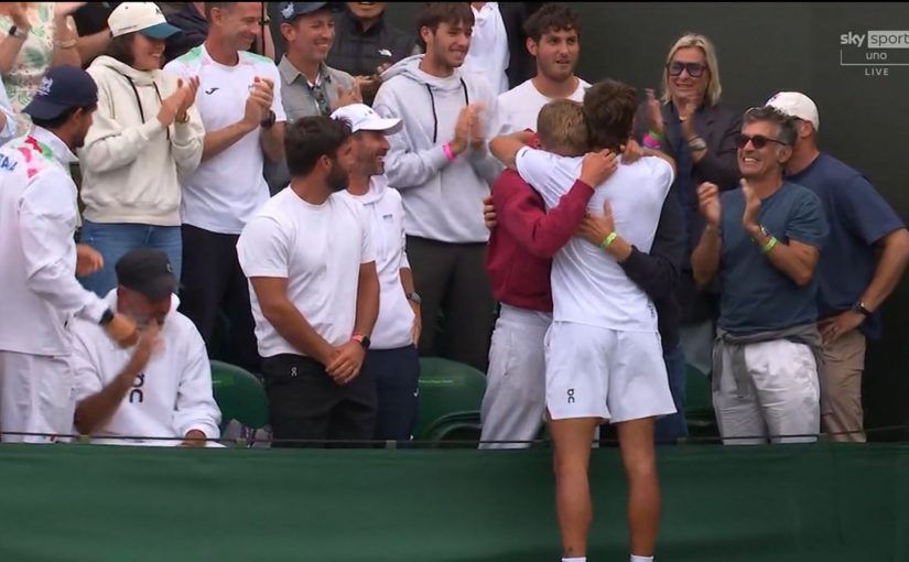 Dopo aver superato Mensik in tre set, Flavio Cobolli ha compiuto un’altra grande impresa agli ottavi di finale di Wimbledon. Il tennista romano ha sconfitto anche Cilic in quattro set (6-4, 6-4, 6-7, 7-6) volando così ai quarti di finale. E ad assistere al match c’èra anche uno spettatore di eccezione: in tribuna a sostenerlo, infatti, anche il suo grande amico Edoardo Bove. I due si sono scambiati un lungo abbraccio al termine della sfida.