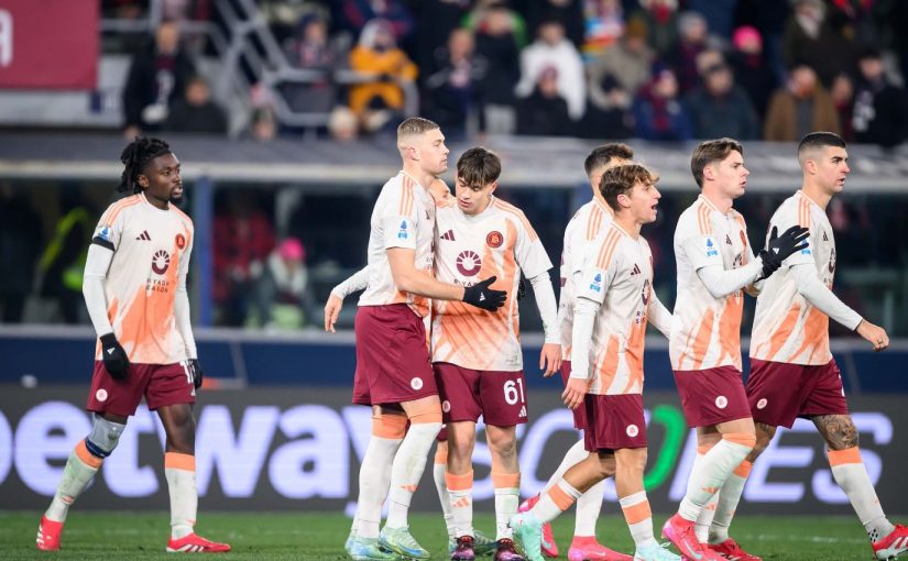 Dopo il derby vinto, la Roma apre il girone di ritorno in casa del Bologna strappando un pareggio in extremis: termina 2-2 al Dall’Ara. Dopo un primo tempo senza reti, al 58′ Saelemaekers sblocca la partita, complice l’imprecisione di Skorupski, al 58′ portando in vantaggio i giallorossi. Ma al 61′ Dallinga sfrutta la ripartenza del Bologna e pareggia i conti. Quattro minuti dopo l’arbitro assegna un calcio di rigore per un tocco di mano di Koné in area e Ferguson ribalta il risultato dal dischetto. Allo scadere c’è un rigore per la Roma per un mani in area rossoblù: Dovbyk, glaciale dagli 11 metri, sigla il 2-2. Gli scatti del match: