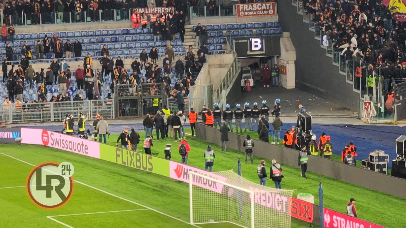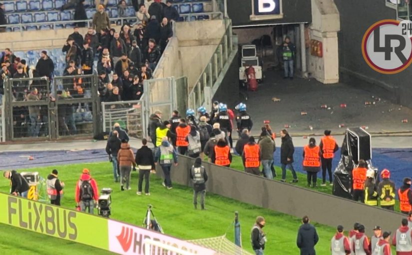 Nella serata di ieri è andata in scena la partita tra Roma ed Eintracht Francoforte, valida per l’ultima giornata della first phase di Europa League e terminata con il risultato di 2-0 in favore dei giallorossi. La gioia per la vittoria è stata però ‘macchiata’ da uno spiacevole episodio accaduto a fine partita: al fischio finale un ragazzo si è reso protagonista di un invasione di campo per chiedere la maglietta a Gianluca Mancini e dopo averla ricevuta ha tentato la fuga per scappare da steward e Digos. Nel tentativo di tornare nel settore Tevere Parterre e scavalcare la ringhiera, il tifoso è stato afferrato dalla sicurezza ed è precipitato nel fossato che separa la tribuna dal campo.