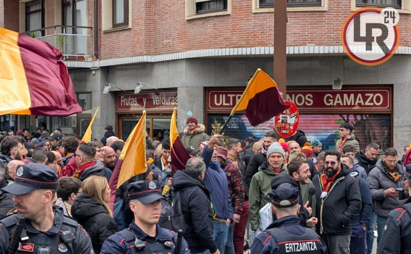 15:49 – Inizia a popolarsi il meeting point dei tifosi giallorossi (attualmente presenti circa 500 romanisti), situato a Iparraguirre Kalea (punto di riferimento il bar Bil-ko). Al momento è tutto tranquillo e alle ore 16 partirà il corteo (scortato dalla polizia) verso il San Mames con accesso da Felipe Serrate Kalea.