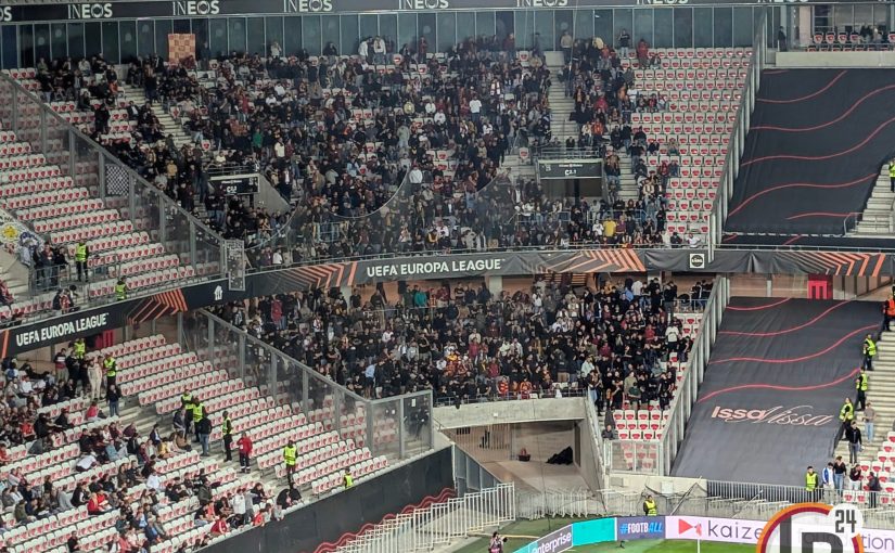 Al via l’Europa League della Roma. I giallorossi sono attesi alle 21.00 all’Allianz Riviera dal Nizza per l’esordio nella fase campionato della competizione. I vari gruppi della Curva Sud in trasferta hanno scelto di non esporre striscioni, bandiere o pezze nel settore ospiti, dopo le vicende accadute ieri notte che hanno portato al fermo di 102 giallorossi.