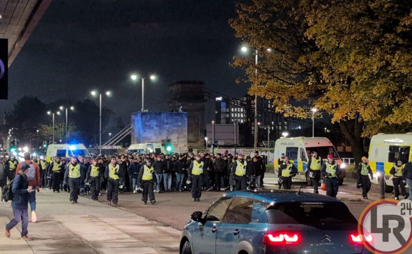 Intorno alle 18.35 è partito il corteo di circa 400 tifosi, scortati dalla polizia, per raggiungere Ibrox.