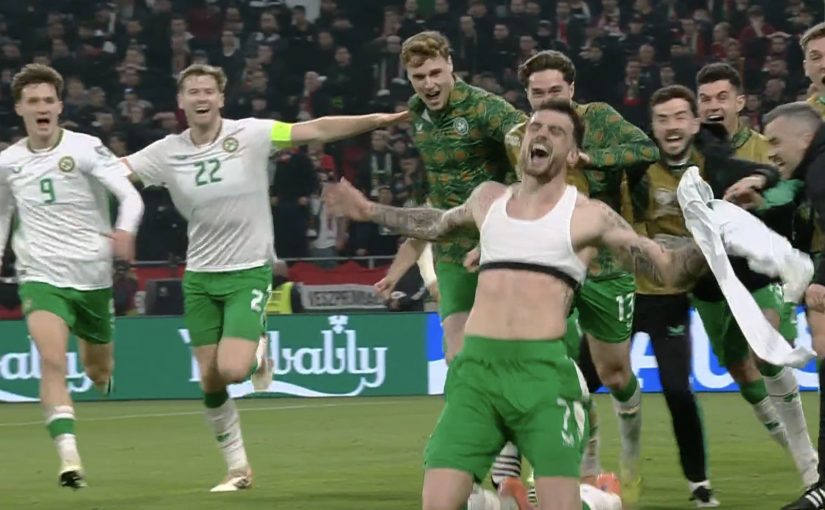 Impresa clamorosa dell’Irlanda, che pur senza Evan Ferguson, batte l’Ungheria e stacca il pass per i playoff . Tutto sembrava filare liscio per i magiari, a fine primo tempo in vantaggio 2-1 con le reti di Lukacs e Varga a rispondere a quella irlandese di Parrott. Proprio mentre la gara viaggiava verso la fine al minuto 80 arriva il 2-2 di Parrot, che nei minuti di recupero, al 96′, trova anche la tripletta personale per un incredibile 2-3 finale. Un successo che permette agli irlandesi di scavalcare al secondo posto proprio l’Ungheria e giocarsi una chance per la Coppa del Mondo. E su Instagram anche lo stesso Evan Ferguson ha commentato la vittoria dei suoi tra il fiero e lo stupito: “Wow“, ha scritto l’attaccante.