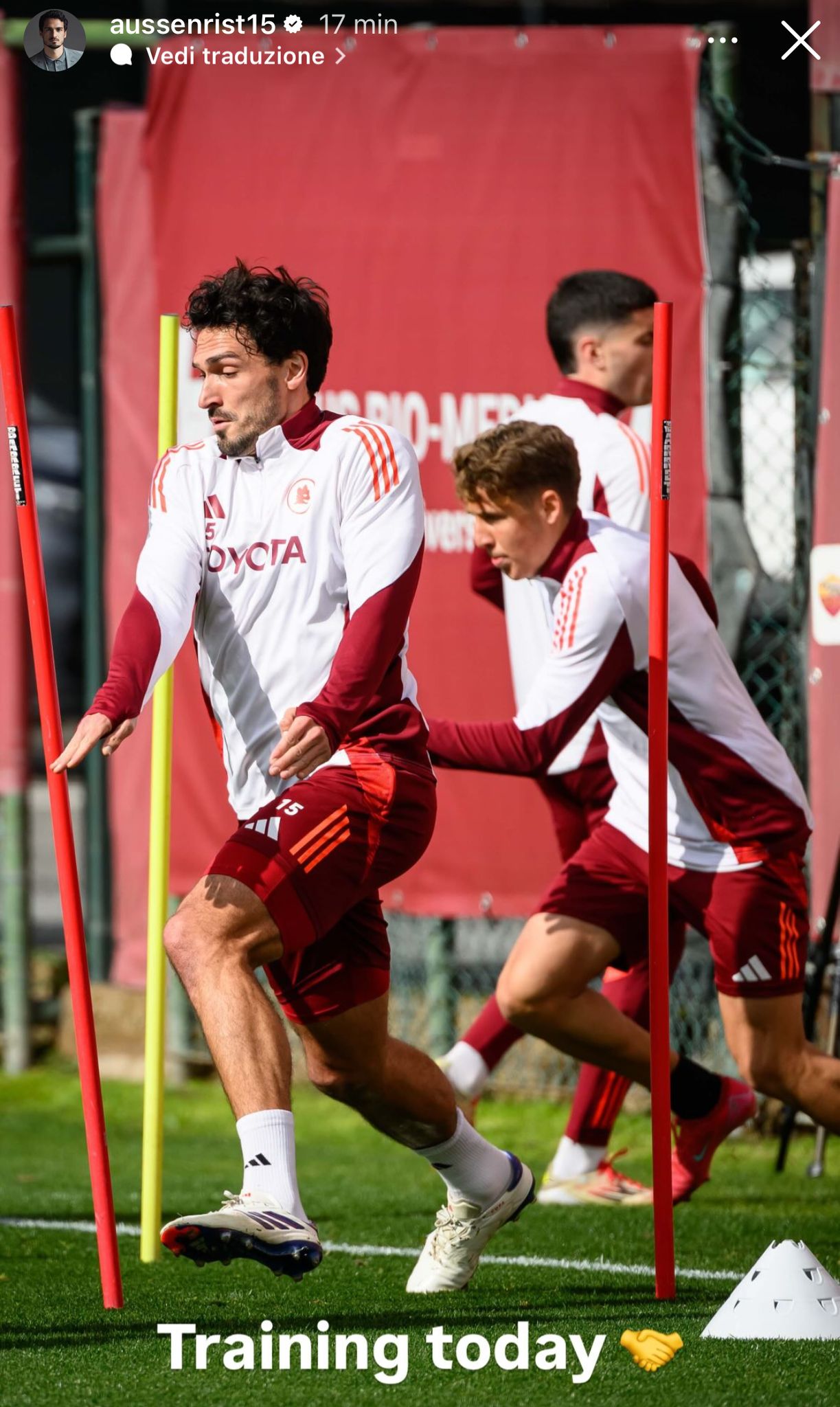 All’indomani del pareggio per 1-1 contro il Porto nel match valido per l’andata dei playoff di Europa League, la Roma è tornata ad allenarsi al centro sportivo ‘Fulvio Bernardini’ di Trigoria per iniziare la preparazione in vista della gara di domenica contro il Parma. Tra i calciatori che hanno partecipato all’allenamento c’è anche Mats Hummels, il quale è rimasto in panchina per 90 minuti nella partita di ieri. Il difensore centrale tedesco ha condiviso su Instagram una foto della seduta odierna, affiancandola alla didascalia “Allenamento oggi”.