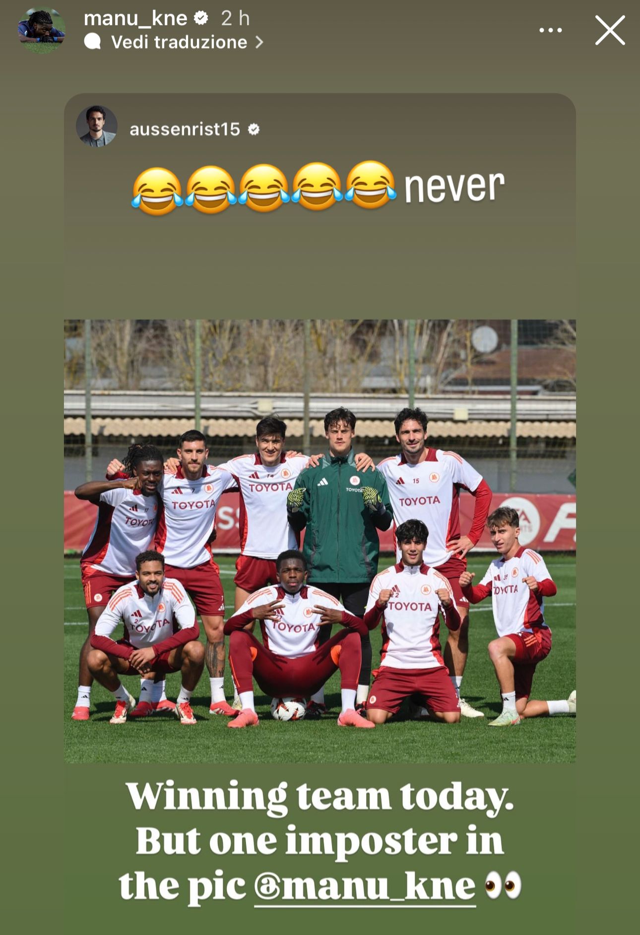 Mats Hummels scherza su Instagram. Il difensore tedesco oggi è stato protagonista in allenamento, dal momento in cui la sua squadra ha vinto la partitella. Il tedesco ha postato lo scatto dei vincitori in una storia Instagram, aggiungendo: “Questa è la squadra vincente di oggi. Ma c’è un impostore…“, menzionando Koné.