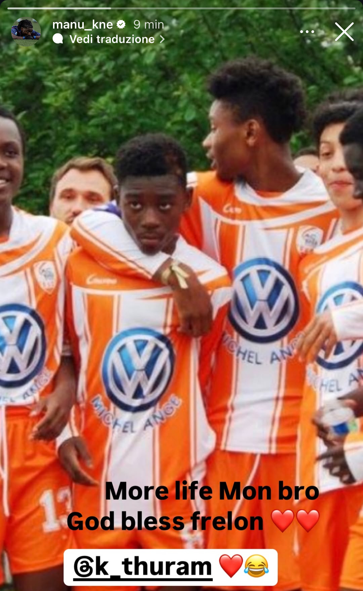 Manu Koné e Khéphren Thuram da bambini: è questo lo scatto scelto dal centrocampista della Roma per augurare buon compleanno al connazionale. Oggi il giocatore della Juventus compie 24 anni e Koné ha condiviso su Instagram una foto dei due insieme da bambini: “Più vita fratello. Dio ti benedica”. Il 6 aprile si affronteranno allo Stadio Olimpico da avversari in occasione di Roma-Juventus.