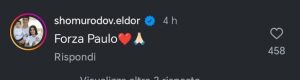 Tanti i messaggi di vicinanza a Paulo Dybala dopo il grave infortunio e la notizia dell’intervento chirurgico. Non poteva mancare, ovviamente, un pensiero da parte dell’amico Paredes “Forza mio re, ti aspetteremo”. “Sempre insieme. Forza frate” ha scritto Saelemaekers, mentre Shomurodov ha commentato “Forza Paulo”.