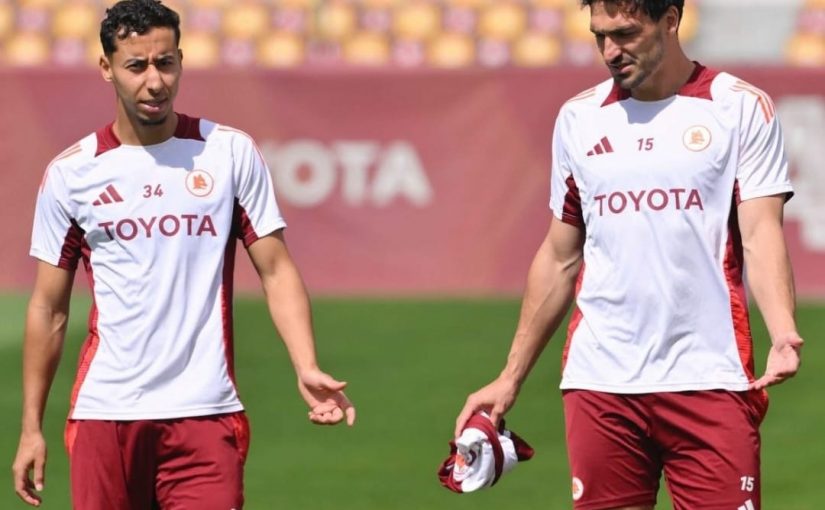 Anche questa mattina la Roma è tornata ad allenarsi a Trigoria in vista della sfida di domenica contro l‘Inter. E dopo la seduta, Mats Hummels e Anass Salah Eddine sono stati immortalati mentre chiacchieravano al termine dell’allenamento. “Dibattiti seri”, ha commentato il difensore tedesco.