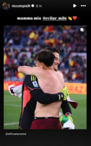 Ai complimenti al proprio compagno di squadra tra i pali, si è unito anche Pisilli allo stesso modo del tedesco, condividendo una foto con Svilar e commentando semplicemente: “Mamma mia, Mile”.