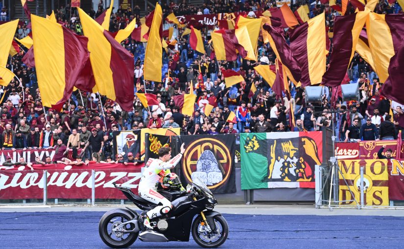 Nella giornata odierna è andato in scena il GP d’Italia al Mugello e a vincere la gara è stato lo spagnolo Marc Marquez. A completare il podio suo fratello Alex (secondo) e il romano Fabio Di Giannantonio. Anche la Roma si è complimentata su X con il pilota italiano, il quale è un grandissimo tifoso del club giallorosso e ha indossato un casco speciale con il nuovo stemma della società: “Fabio Di Giannantonio terzo al Gran Premio d’Italia! Congratulazioni!”, il messaggio della Roma.