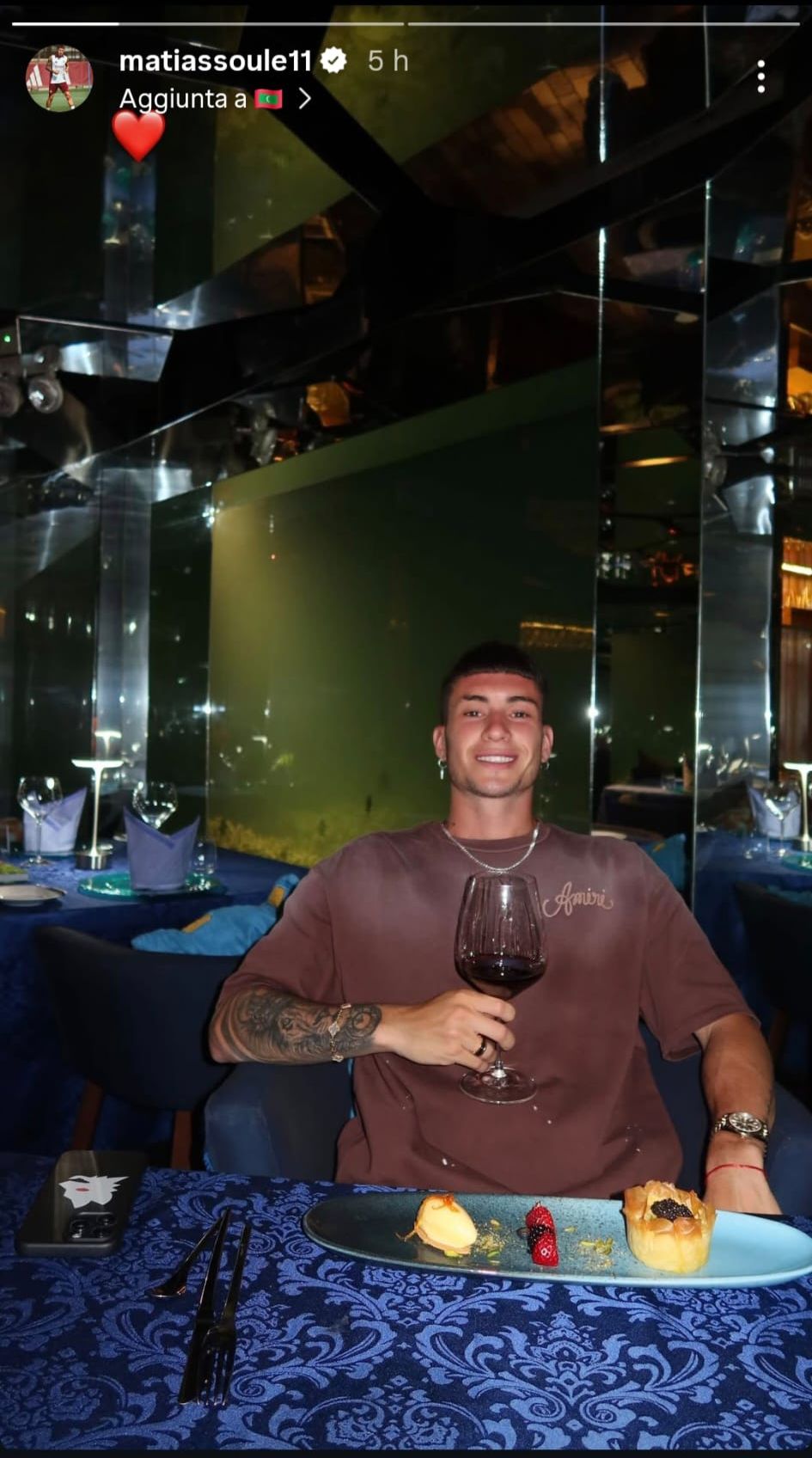 In attesa di riprendere la stagione il prossimo 13 luglio a Trigoria, i giocatori della Roma si stanno godendo le ultime settimane di vacanza. Tra questi c’è Matias Soulé, che dopo un paio di giorni a Dubai, ora si trova nelle Maldive. Nell’ultimo scatto postato sul suo profilo Instagram, si intravede il telefono del giocatore, con una cover tutta dedicata alla Roma con il lupetto di Gratton.