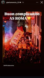 Anche Gianluca Mancini ha fatto gli auguri al club scrivendo: “Buon compleanno AS ROMA“.