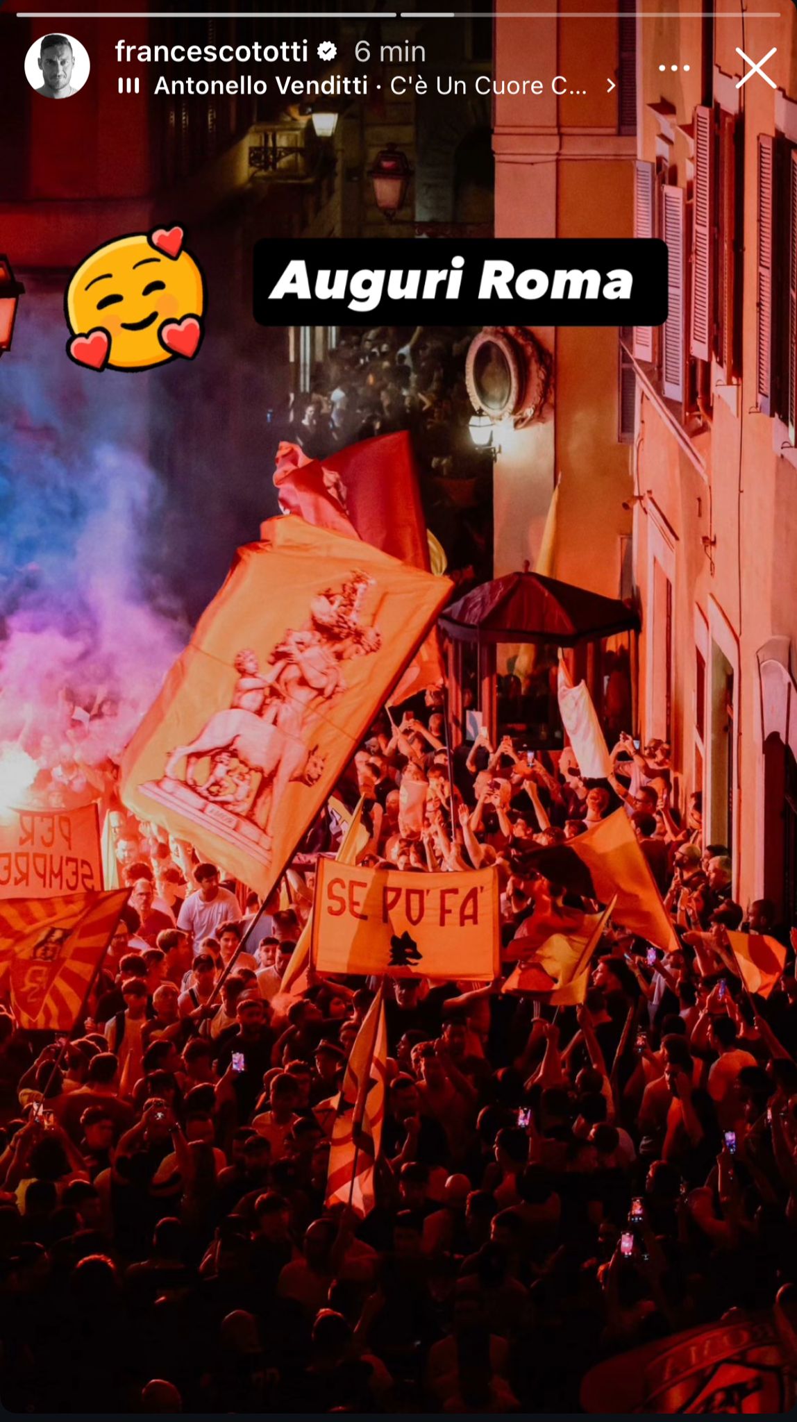 Alle celebrazioni giallorosse si unisce anche Francesco Totti, che sempre su Instagram ha voluto fare gli auguri alla Roma per il suo 98esimo anniversario.