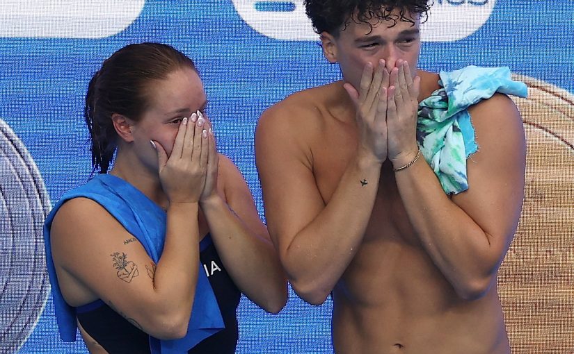Doppio trionfo azzurro nei Mondiali di nuoto. Chiara Pellacani e Matteo Santoro, infatti, hanno vinto la medaglia d’oro nei tuffi sincronizzati dal trampolino alto 3 metri ai Mondiali di nuoto di Singapore. I due, grandi tifosi giallorossi, hanno ricevuto anche i complimenti della Roma sui social: “Complimenti a Chiara Pellacani e Matteo Santoro, nuovi campioni del mondo nel sincro misto 3 metri!”