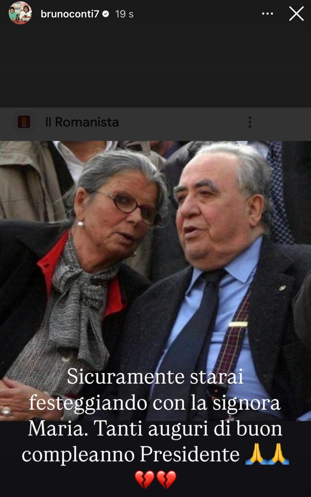 Arriva anche il ricordo di Bruno Conti: “Sicuramente starai festeggiando con la signora Maria. Tanti auguri di buon compleanno Presidente”.