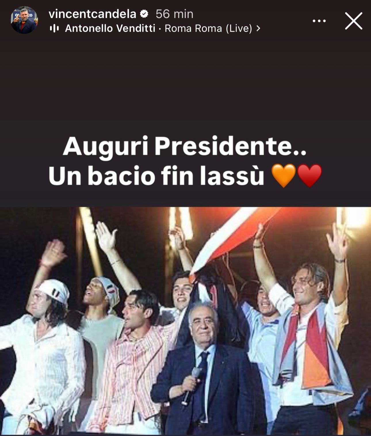 “Auguri Presidente. Un bacio fin lassù”, il messaggio di Vincent Candela.