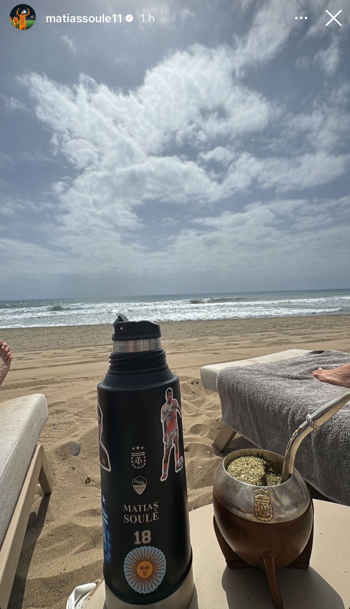 Gian Piero Gasperini ha concesso alla squadra tre giorni di riposo prima di tornare ad allenarsi al ‘Fulvio Bernardini’ di Trigoria nella giornata di martedì. Alcuni calciatori hanno deciso di ricaricare le pile in vista della sfida contro il Torino e Matias Soulé ha optato per l’opzione relax al mare: l’argentino ha pubblicato una foto su Instagram mentre è sdraiato sul suo lettino in compagnia dell’inseparabile mate personalizzato.