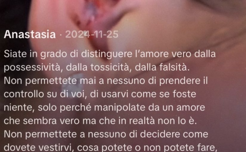Ricorre oggi la Giornata internazionale per l’eliminazione della violenza contro le donne e sui social arriva il messaggio di Anastasia Conti, nipote di Bruno Conti e attuale fidanzata del centrocampista Niccolò Pisilli, in cui racconta la sua precedente relazione. “Siate in grado di distinguere l’amore vero dalla possessività, dalla tossicità, dalla falsità – scrive -. Non permettete mai a nessuno di prendere il controllo su di voi, di usarvi come se foste niente, solo perché manipolate da un amore che sembra vero ma che in realtà non lo è. Non permettete a nessuno di decidere come dovete vestirvi, cosa potete o non potete fare, cosa dovete o non dovete pubblicare sui vostri social e non privatevi mai di niente. Non perdonate solo per paura di perdere quella persona: ai primi segnali di allarme, andate via, perché dopo sarà troppo tardi. Ci sarà qualcuno che vi accetterà e vi amerà per quello che siete, con tutti i pregi e difetti che ognuna di noi ha. Non abbiate paura di andare avanti, troverete l’amore che vi meritate”.