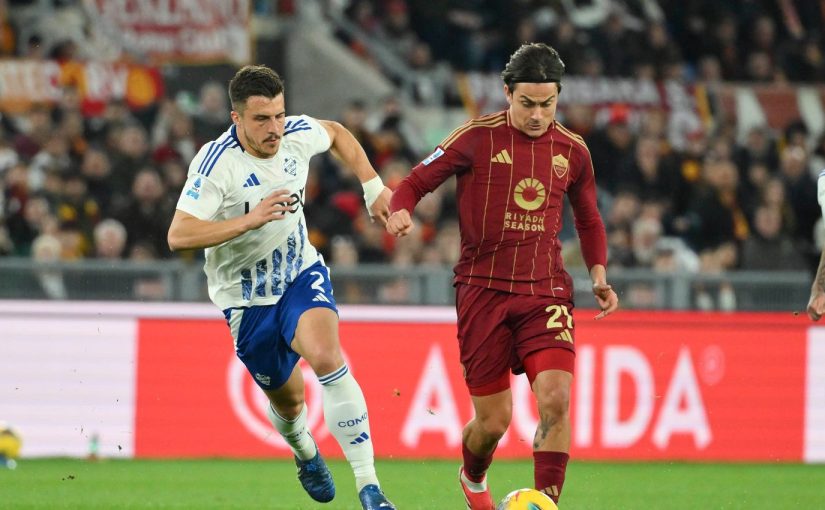 IL TEMPO (L. PES) – Con il cuore e con i cambi. La Roma non si ferma e batte anche il Como in rimonta all’Olimpico salendo a quota quattro vittorie consecutive in campionato come non accadeva dal 2020. Un pomeriggio difficile contro l’ultima squadra che aveva fermato i giallorossi in campionato. Tanti errori e un primo tempo spento. Poi però scende in campo Ranieri: cinque cambi che entrano praticamente tutti nel gol della rimonta e cambiano l’andamento di una gara che Pellegrini & Co avevano perso nel primo tempo. Nel prepartita aveva ritirato il premio di allenatore del mese, ma sicuramente oggi è l’uomo della partita. Solita sorpresa per Ranieri che tiene in panchina Hummels e sceglie Pellegrini, ma, soprattutto affida la corsia di destra a Mati Soulé piuttosto che a Saelemaekers. Primo tempo di grande studio. […] Il Como tiene il possesso del pallone costringendo la Roma ad un’attesa che non le appartiene. Tanti errori sul pressing e nelle uscite dei difensori fino all’imbucata di Perrone per Da Cunha che porta in vantaggio i suoi. […] Poi entrano Saelemaekers, Dovbyk, El Shaarawy, Cristante e Rensch e l’assetto tattico viene ridisegnato. Il belga trova il pareggio dopo un bell’assist di Celik e premia la scelta di mister Ranieri. […] Dybala salta secco Kempf che lo stende: il tedesco era già ammonito, rosso e ospiti in dieci. Cristante poi pesca Rensch sulla destra, l’olandese crossa in modo perfetto per Dovbyk che torna al gol e porta in vantaggio la Roma. I giallorossi rischiano con qualche errore di troppo ma alla fine la portano a casa.