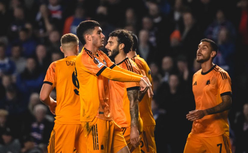 I giallorossi hanno preso subito in mano il copione del match grazie alla regia di Cristante e alla ritrovata vena di Pellegrini. E proprio sull’asse della vecchia guardia nasce il vantaggio dopo 13 minuti. A mettere la ceralacca è Soulé che di testa trova il suo primo gol in Europa League. L’argentino ci riprova una manciata di minuti dopo ma trova la parata di Butland. Così come a San Siro la Roma impone gioco e condizione fisica nei primi 40 minuti. E stavolta segna pure. Al 36′ azione perfetta: palla tagliata di Mancini, stop e assist di Dovbyk e piatto delicato di Pellegrini che ammutolisce l’Ibrox Park. La Roma prova a chiudere i giochi ma prima Soulé fa la barba al palo poi è Cristante a sparare alto.
