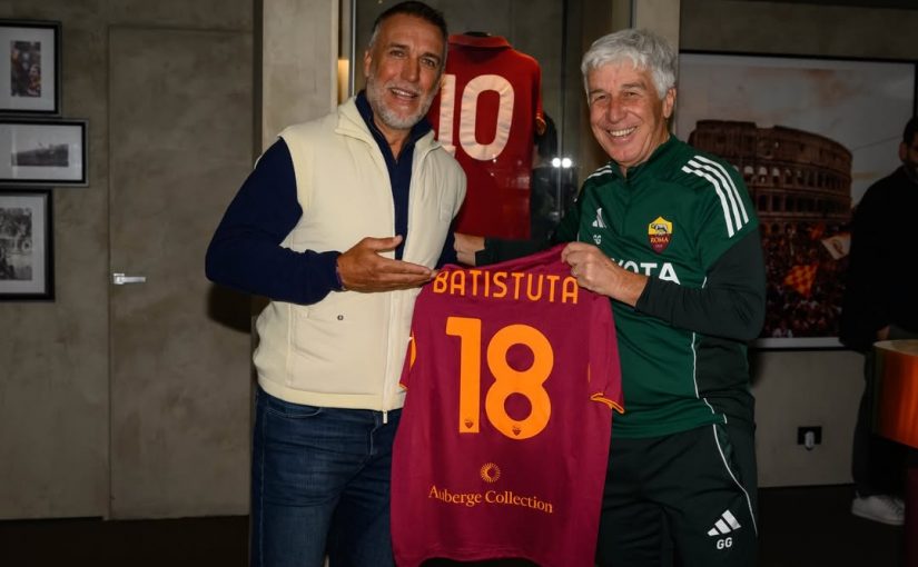 Il Re Leone è tornato a Trigoria. Una visita a sorpresa a distanza di 23 anni dalla sua ultima volta quella di Gabriel Omar Batistuta che ieri, accompagnato da Vincent Candela, ha varcato quei cancelli che lo hanno visto protagonista nell’anno del terzo scudetto. Il bomber argentino ha riabbracciato Claudio Ranieri, suo allenatore ai tempi della Fiorentina. Poi ha incontrato Gasperini e tutta la squadra. Compreso il connazionale Dybala.