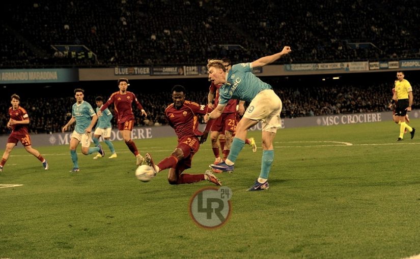 LR24 (MIRKO BUSSI) – A leggere il futuro di Napoli-Roma alla finestra, ricalcando i duelli che si sarebbero agganciati frequentemente in campo, non servivano particolari competenze per cerchiare in rosso quello tra Ndicka ed Hojlund. Da una parte, quella di casa, la tendenza lukakiana delle squadre di Conte ad accedere a zone di rifinitura utilizzando il lavoro da pivot del proprio vertice offensivo, dall’altra, quella romanista, di marcati riferimenti individuali nei propri comportamenti difensivi. Questo il conteggio finale: saranno 25 i duelli con protagonisti Ndicka ed Hojlund, nettamente il più frequentato della sfida, visto che al secondo posto c’è quello tra Malen e Rrahmani arrivato, appena, a 7 eventi.