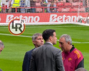 Prima del fischio d’inizio, è andato in scena sul terreno di gioco un incontro tra il presente e il passato della Roma. Il nuovo ds giallorosso, Frederic Massara, si è intrattenuto in un fitto colloquio con Monchi, attuale dirigente dell’Aston Villa ed ex omologo a Trigoria. I due hanno parlato per diversi minuti, scambiandosi opinioni sotto gli occhi dei presenti.