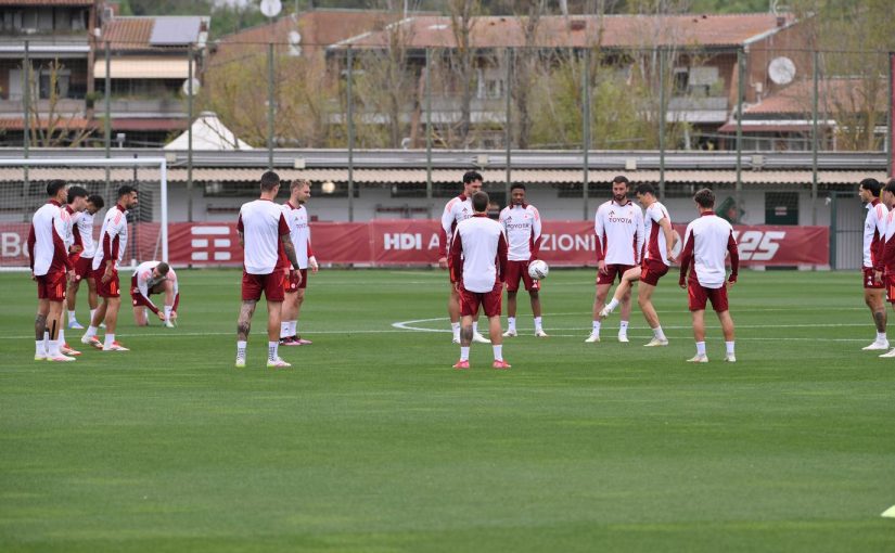 La Roma continua ad allenarsi al centro sportivo ‘Fulvio Bernardini’ di Trigoria in vista dell’attesissimo Derby della Capitale contro la Lazio, valido per la trentaduesima giornata e in programma domenica 13 aprile alle ore 20:45 allo Stadio Olimpico. Ancora in gruppo Devyne Rensch, ormai pienamente recuperato dopo l’infortunio muscolare, e Lorenzo Pellegrini, il quale ha smaltito il duro colpo al polpaccio subito prima di Roma-Juventus.