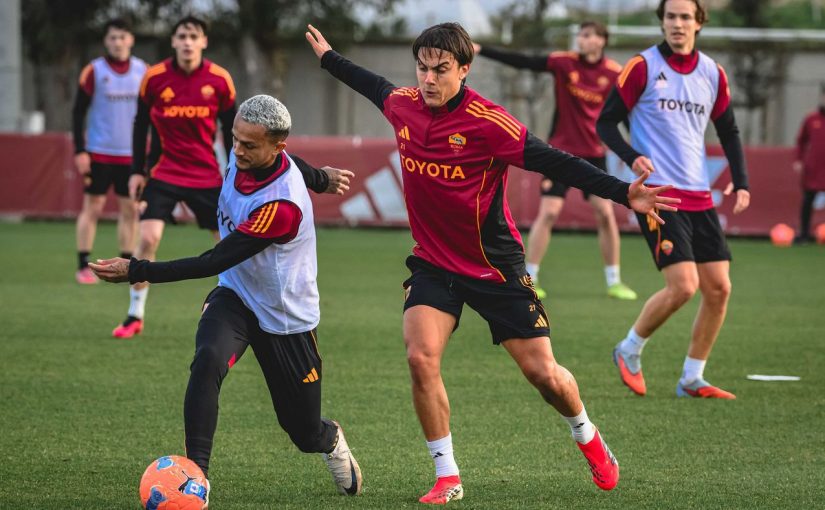 La Roma continua ad allenarsi al ‘Fulvio Bernardini’ di Trigoria in vista del match contro il Bologna, valido per la trentaquattresima giornata di Serie A e in programma sabato alle ore 18 allo Stadio Dall’Ara. Arrivano buone notizie per Gian Piero Gasperini: Paulo Dybala e Wesley hanno smaltito i rispettivi infortuni e oggi sono tornati ad allenarsi in gruppo per la prima volta. Sia l’argentino sia il brasiliano hanno svolto l’intera seduta mattutina con il resto della squadra. Lavoro differenziato, invece, per Manu Koné, Devyne Rensch, Lorenzo Pellegrini e Artem Dovbyk.